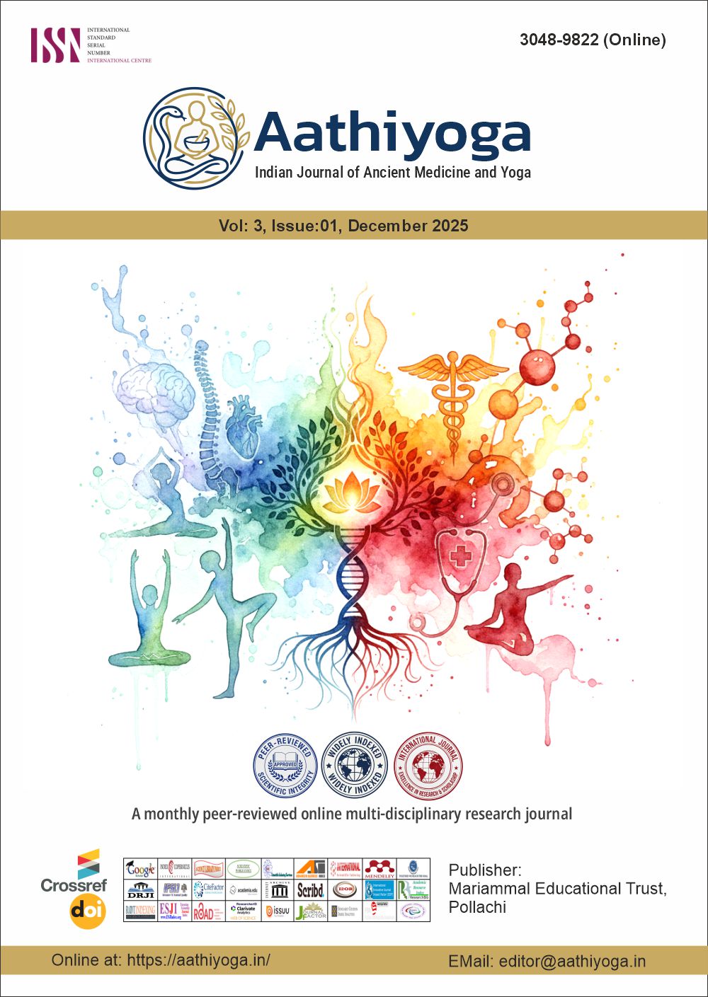 The Efficacy of Vethathiri Maharishi’s Makarasana and Simplified Kundalini Yoga (SKY) as a Therapeutic Intervention for Polycystic Ovarian Disease among the Collegiate Female Population. (2025). Aathiyoga Indian Journal of Ancient Medicine and Yoga, 3(01), 14-19. https://aathiyoga.in/irjoyas/index.php/issue/article/view/77