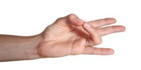Tip of the ring finger touches the tip of the thumb, with the other three fingers stretched out.